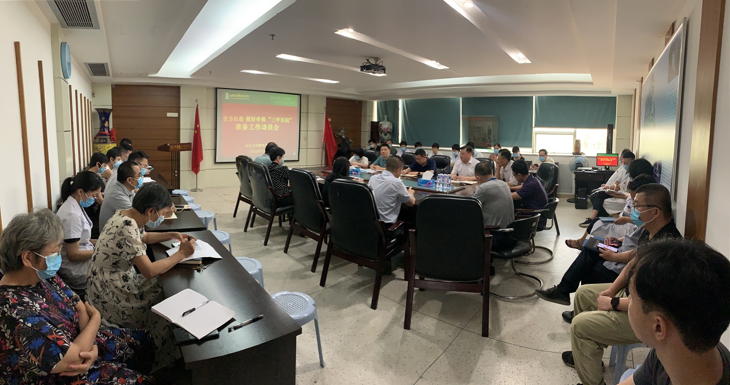 7月14日下午,汕头大学精神卫生中心召开“全力以赴,申报‘三甲医院’准备工作动员会”,医院领导班子成员、三甲筹备办公室全体成员,副科级以上干部及业务科室负责人等参加会议。会议由医院蔡桂生书记主持。
