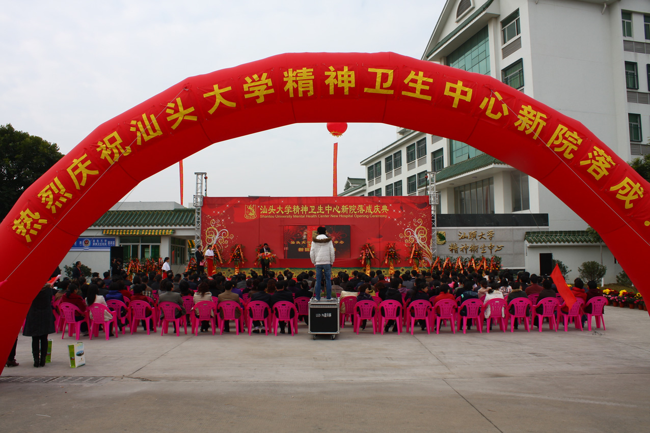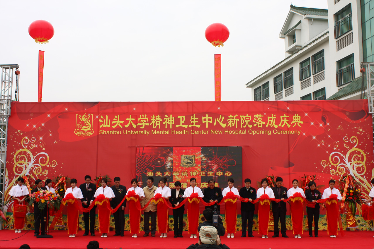1月9日是我院一个神圣而喜庆的日子,我们欢聚一堂,共庆新院落成。汕头市郭大钦副市长、省卫生厅精神卫生处尹冬梅副处长、广东省精神卫生研究所贾福军所长、汕头大学林丹明副校长、市卫生局陈俊凯局长、汕头大学医学院石刚刚书记、李嘉诚基金会罗敏洁顾问、陈茂怀副书记等各级领导,市有关单位领导、来自省内同行、各附属医院的领导、国内外精神病学专家以及我院全体职工参加新院落成庆典大会,大会在医院正门口举行,我院党总支姚锡涛书记主持庆典仪式。