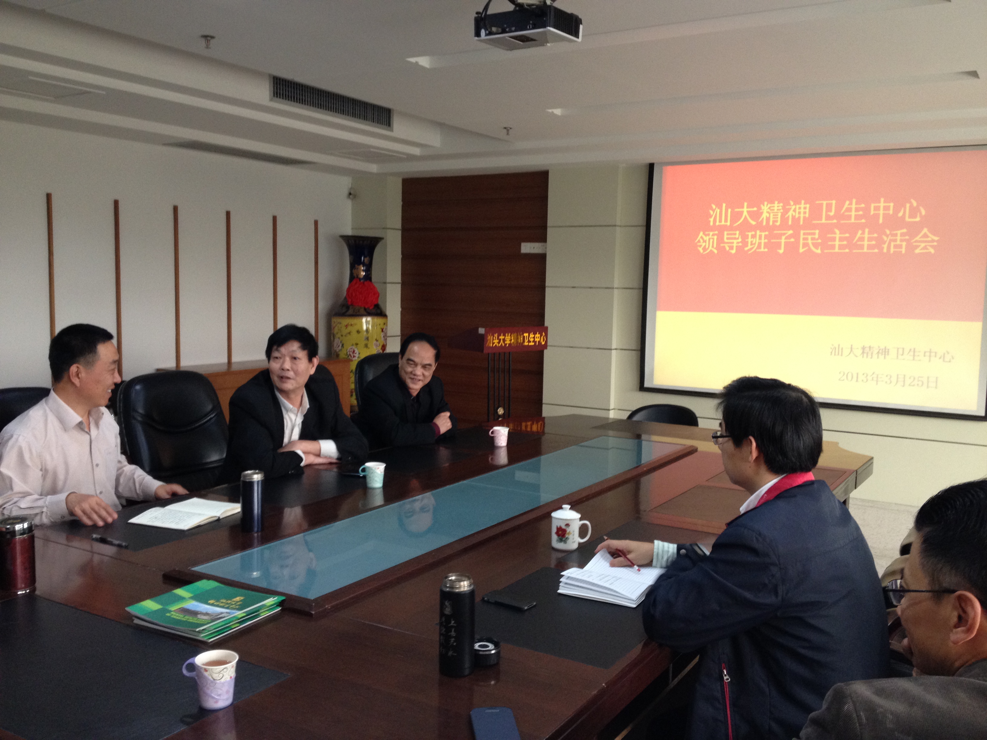 3月25日下午,精神卫生中心召开领导班子民主生活会,中心领导班子成员参加,汕大医学院郑秋阳副院长、纪委吴健辉副书记等两位领导莅会指导。