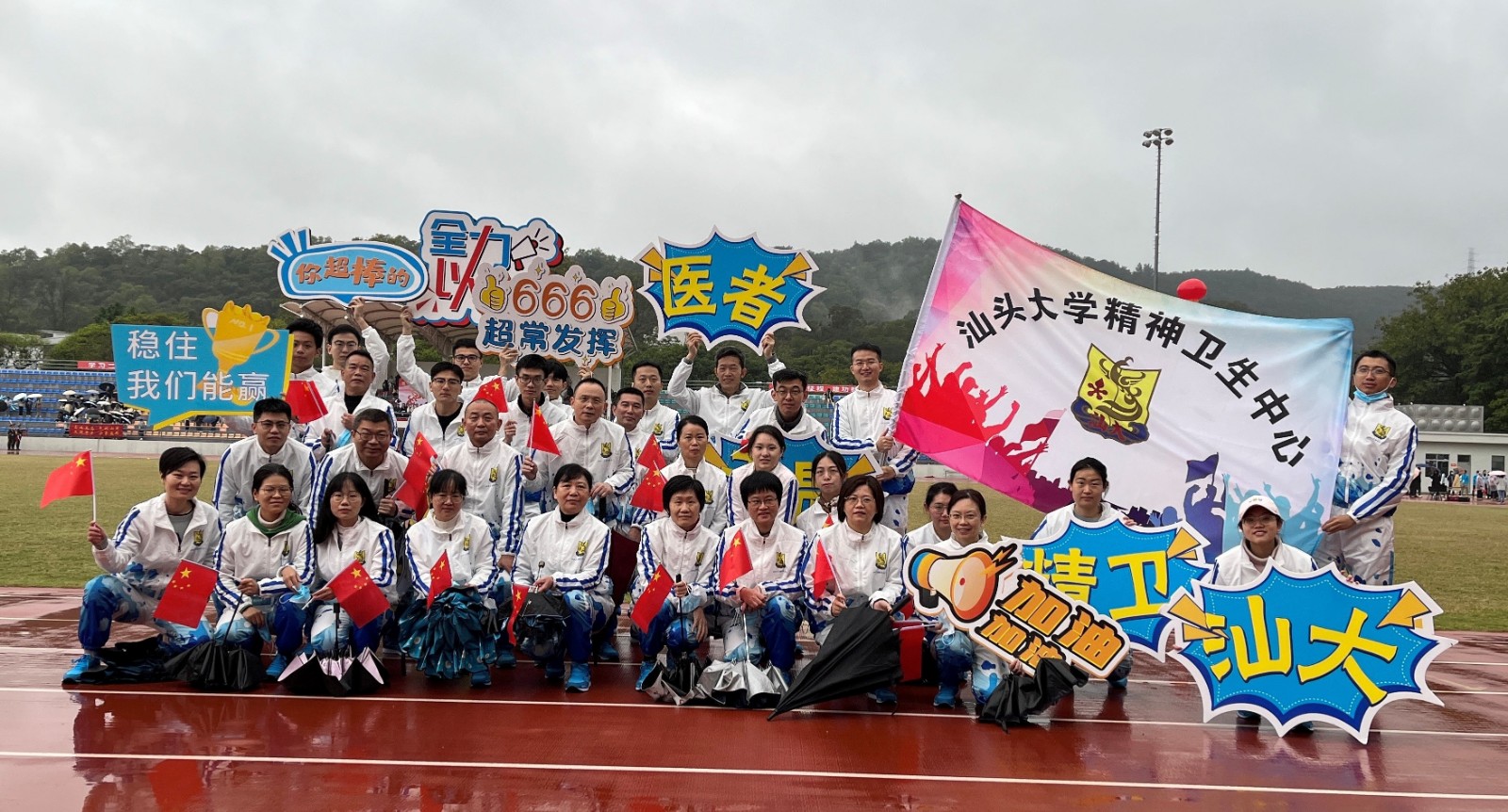 汕头大学第三十六届田径运动会于12月14日至15日在桑浦山校区田径场隆重举办。本次运动会中,汕头大学精神卫生中心共派出43名职工代表参赛,表现出色,最终获得教职工组团体总分第二名佳绩。