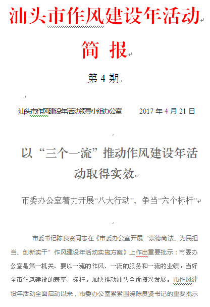 【简报】汕头市作风建设年活动简报〔2017〕第4期