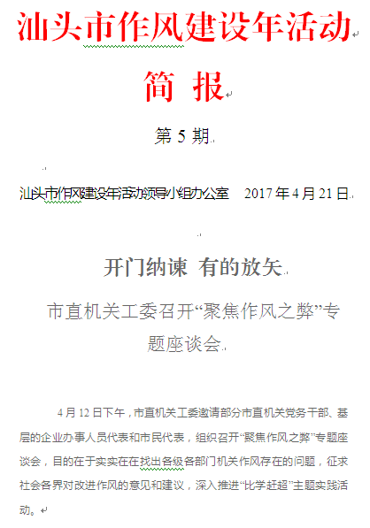 【简报】汕头市作风建设年活动简报〔2017〕第5期