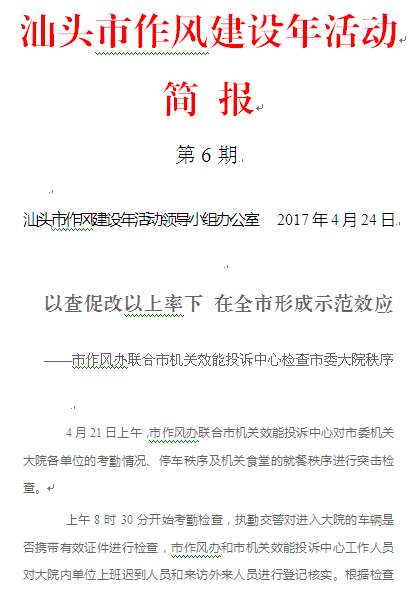 【简报】汕头市作风建设年活动简报〔2017〕第6期