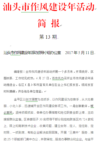 【简报】汕头市作风建设年活动简报〔2017〕第13期