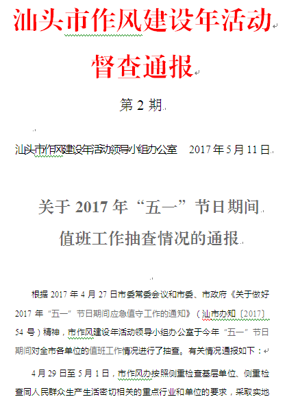 【督查通报】汕头市作风建设年活动督查通报〔2017〕第2期