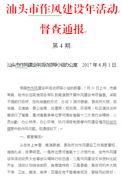 【督查通报】汕头市作风建设年活动督查通报〔2017〕第4期