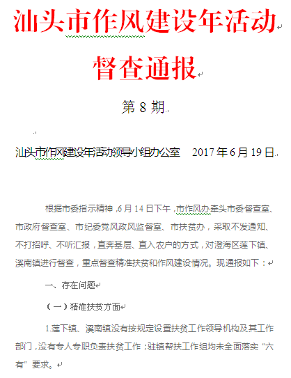 【督查通报】汕头市作风建设年活动督查通报〔2017〕第8期