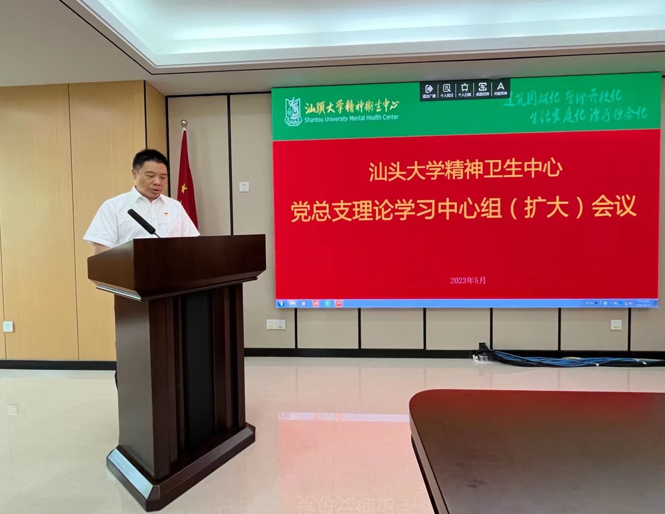 为推动学习贯彻习近平新时代中国特色社会主义思想主题教育走深走实,5月11日下午,我院召开党总支理论学习中心组(扩大)会,党总支书记蔡桂生作专题党课。医院党总支委员、各党支部委员、全体中层干部参加会议,会议由党总支委员、中心副主任陈平周主持。