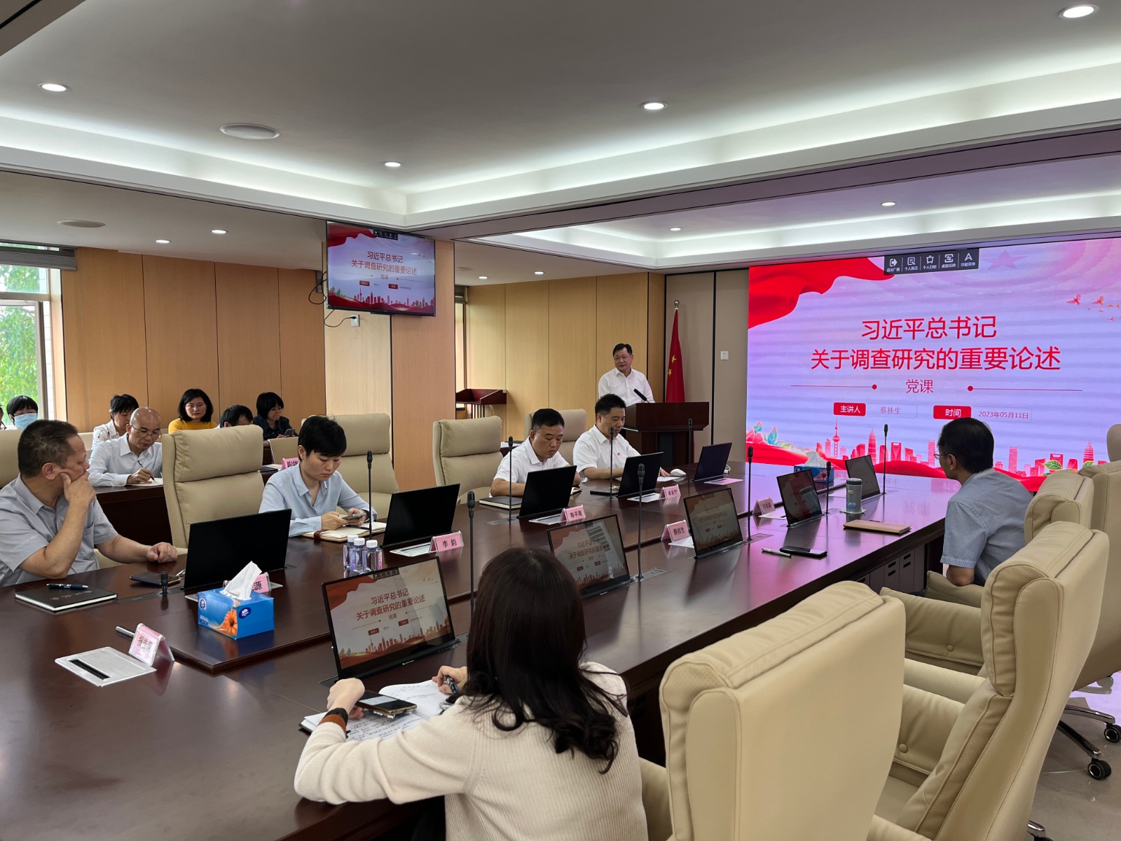 会上,蔡桂生书记作《习近平总书记关于调查研究的重要论述》专题党课,重点围绕“调查研究是我们党创造百年伟业的重要法宝”“习近平总书记论调查研究”“解读《关于在全党大兴调查研究的工作方案》”“运用好调查研究这个重要思想方法和工作方法”等四个方面为大家全面梳理了马克思和恩格斯等早期无产阶级革命家的调查研究思想和我们党自创立以来几代领导核心坚持运用调查研究的思想方法和工作方法解决不同阶段的社会矛盾和现实问题、保证党的事业不断走向胜利的历史事实,系统总结了党的十八大以来习近平总书记关于调查研究的重要论述,阐述了调查研究的历史意义、理论意义和现实意义。