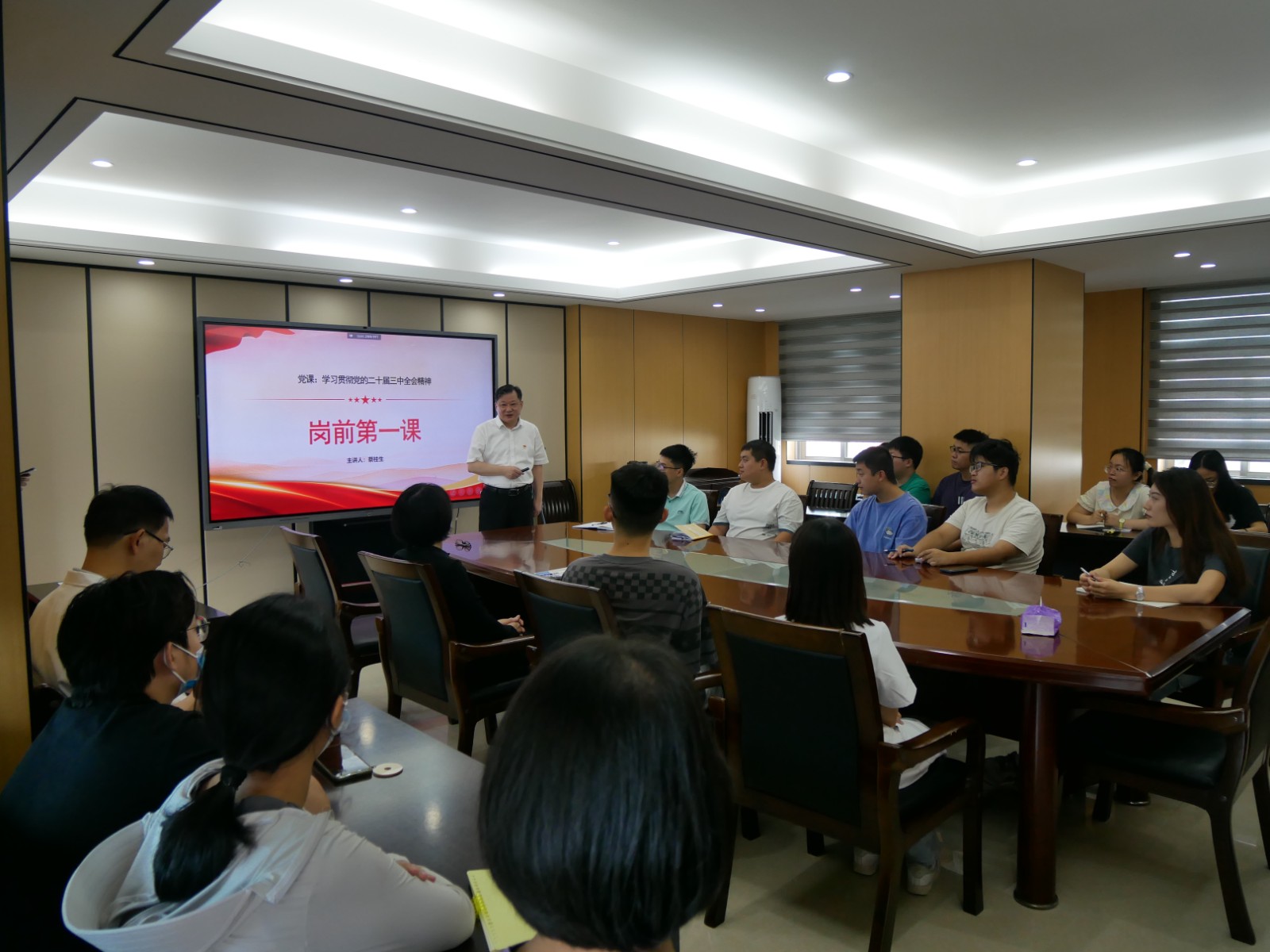 课上,蔡书记以《深入学习领会党的二十届三中全会精神》为主题,给新员工们全面阐述了党的二十届三中全会的核心要义,详细解读了全会的新思想、新观点、新论断,并就全会对医疗工作、教育工作的指示精神,结合精神医学科的发展前景及医院的中心工作,号召、动员全体新员工以党的二十届三中全会精神为指引,在医院提供的广阔平台上发挥创新才能,在以中国式现代化全面推进强国建设、民族复兴伟业中作出新一代青年人应有的贡献,在新时代新征程上助力医院实现高质量发展。