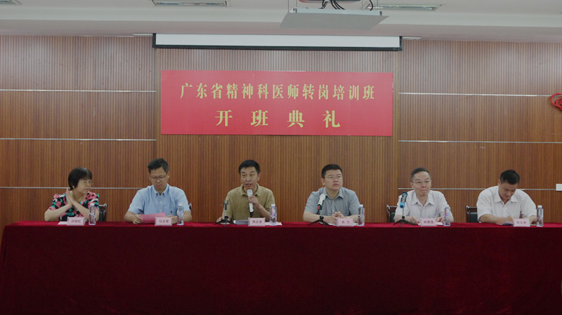 10月18日上午,广东省(潮州、汕尾)精神科医师转岗培训班开班仪式在精神卫生中心举行,省卫计委疾控处肖力副处长、汕大精神卫生中心黄庆军主任、广东省精神卫生中心林勇强主任、汕尾市卫计局马文军副局长、潮州市卫计局陈文洲副局长出席,汕大精卫中心主任助理、广东省精神科医生培训中心办公室洪晓虹主任主持仪式。