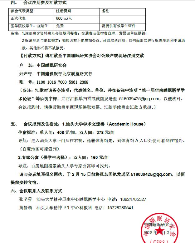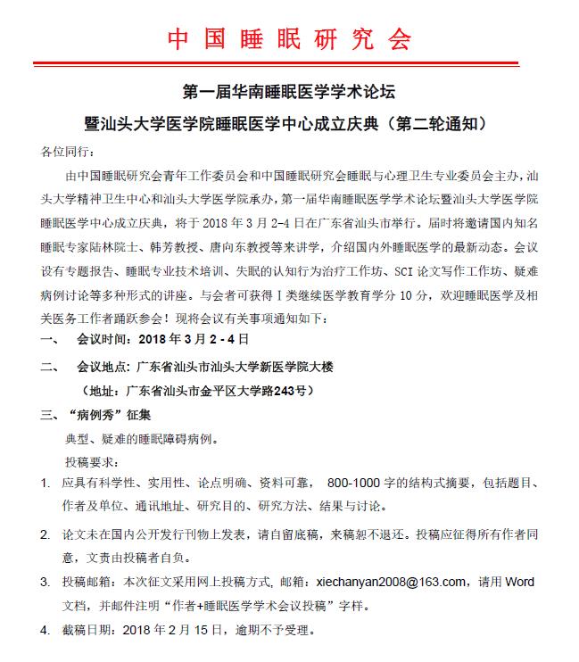 第一届华南睡眠医学学术论坛暨汕头大学医学院睡眠医学中心成立庆典通知