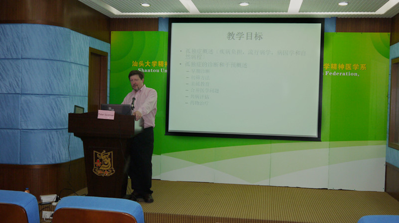 5月18-19日,由精神卫生中心主办的孤独症儿童早期诊断与评估培训班在汕大医学院3楼学术报告厅举行。加拿大多伦多大学精神病学系Prof. Peter Szatmari 和 Dr. Irene Drmic应邀为我市从事孤独症诊断及评估的从业人员进行专题培训。培训班为期2天,内容包括孤独症的早期诊断、早期干预及案例分析,共有来自精神卫生中心、汕头市残联等各从事孤独症治疗的相关人员近100人参加。培训班的成功举办,为我市孤独症从业人员引进了国际领先的孤独症早期诊断技术,促进了我市孤独症儿童早期诊断及干预水平的发展。(办公室)