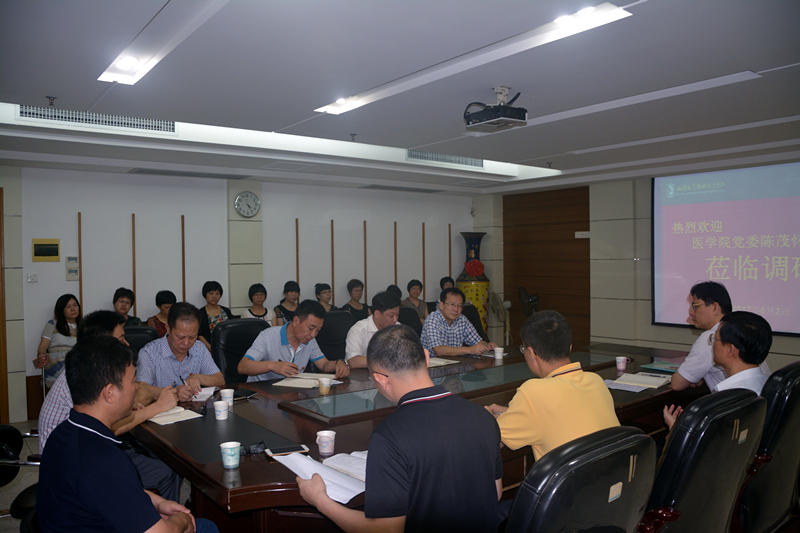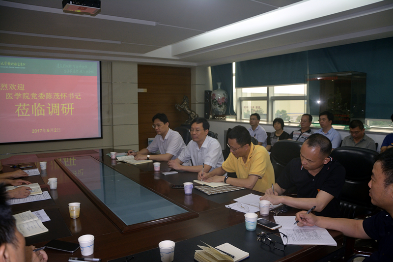 6月2日下午,汕大医学院党委陈茂怀书记带队莅临精神卫生中心,就医院党建暨党风廉政建设等工作进行调研,医院党政领导班子成员、全体中层干部参加。会议由蔡桂生书记主持。