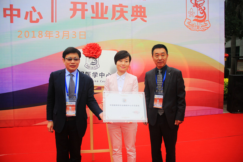 庆典中,黄庆军主任致欢迎辞,并为来宾简要介绍了精神卫生中心高度人文关怀的办院理念及“建筑园林化、管理开放化、生活家庭化、治疗综合化”的管理模式,以及医院未来规划,即以建设汕大医学院脑科医院为载体,完成从以重性精神疾病治疗为主,向重性与轻性精神疾病治疗并重的转型,打造粤东西北地区区域精神卫生医疗高地。边军辉执行院长代表汕大医学院,对精神卫生中心的成绩表示肯定,并表达了对睡眠医学中心的殷切希望。省精神卫生中心贾福军主任及中国睡眠研究会韩芳教授在致辞中肯定了睡眠医学中心的人才与各项配备,以及睡眠医学中心对填补粤东地区睡眠专业空白的重要意义。随后,嘉宾为睡眠医学中心揭牌,并授予睡眠医学中心“中国睡眠研究会睡眠中心建设标准基地”牌匾。