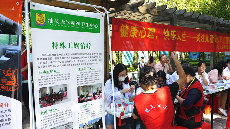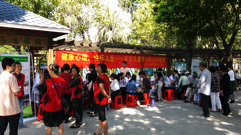 10月13日,精神卫生中心联合市团委、附二院、蓝天义工队在汕头市中山公园举办义诊活动,提供儿童青少年发育筛查,自闭症等儿童青少年疾病评估与咨询等服务,以及手工艺品工作坊。