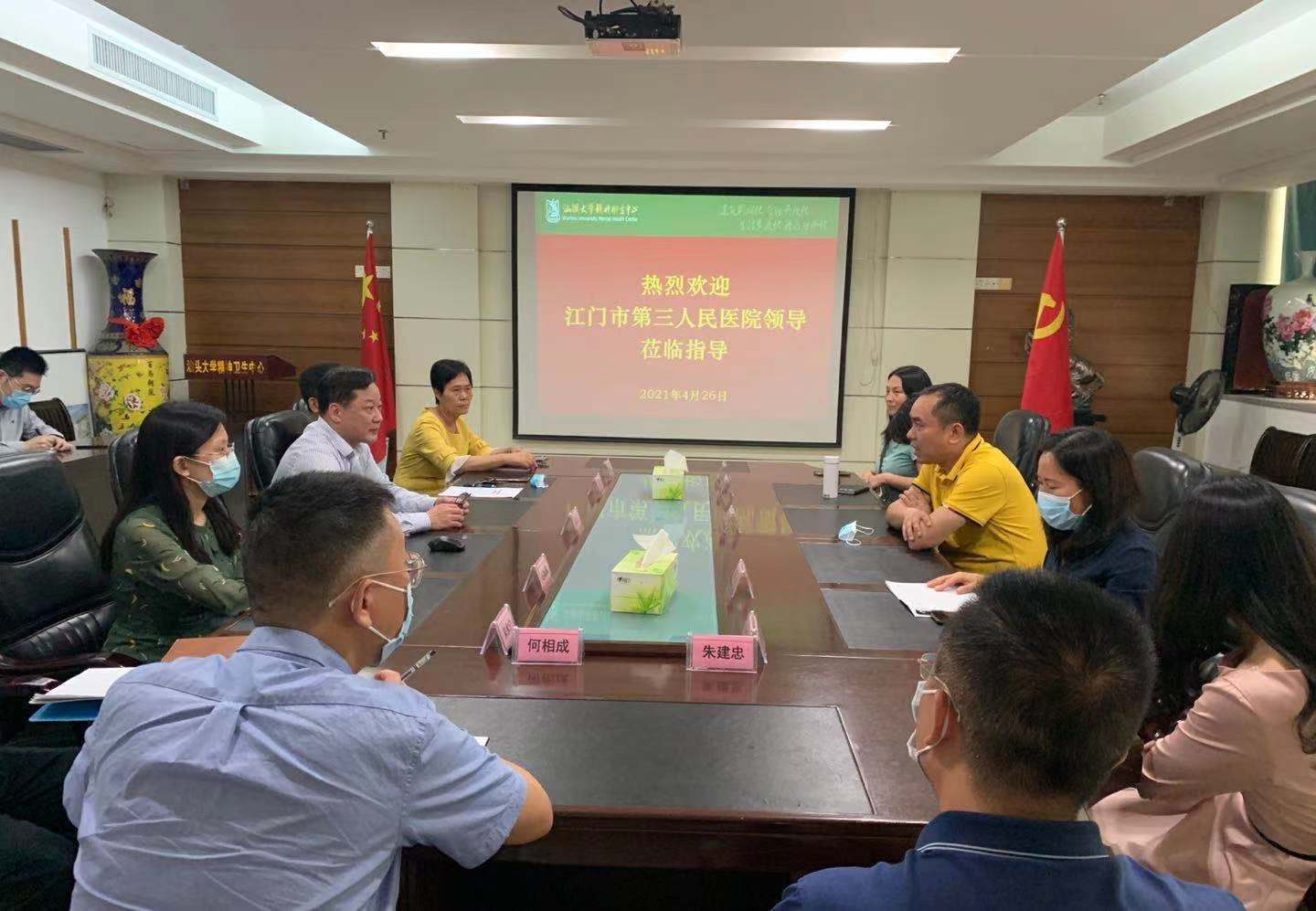 4月26日下午,江门市第三人民医院副院长李忠平一行到汕头大学精神卫生中心进行参观交流。医院党总支书记蔡桂生、院长黄庆军及相应科室负责人陪同交流。