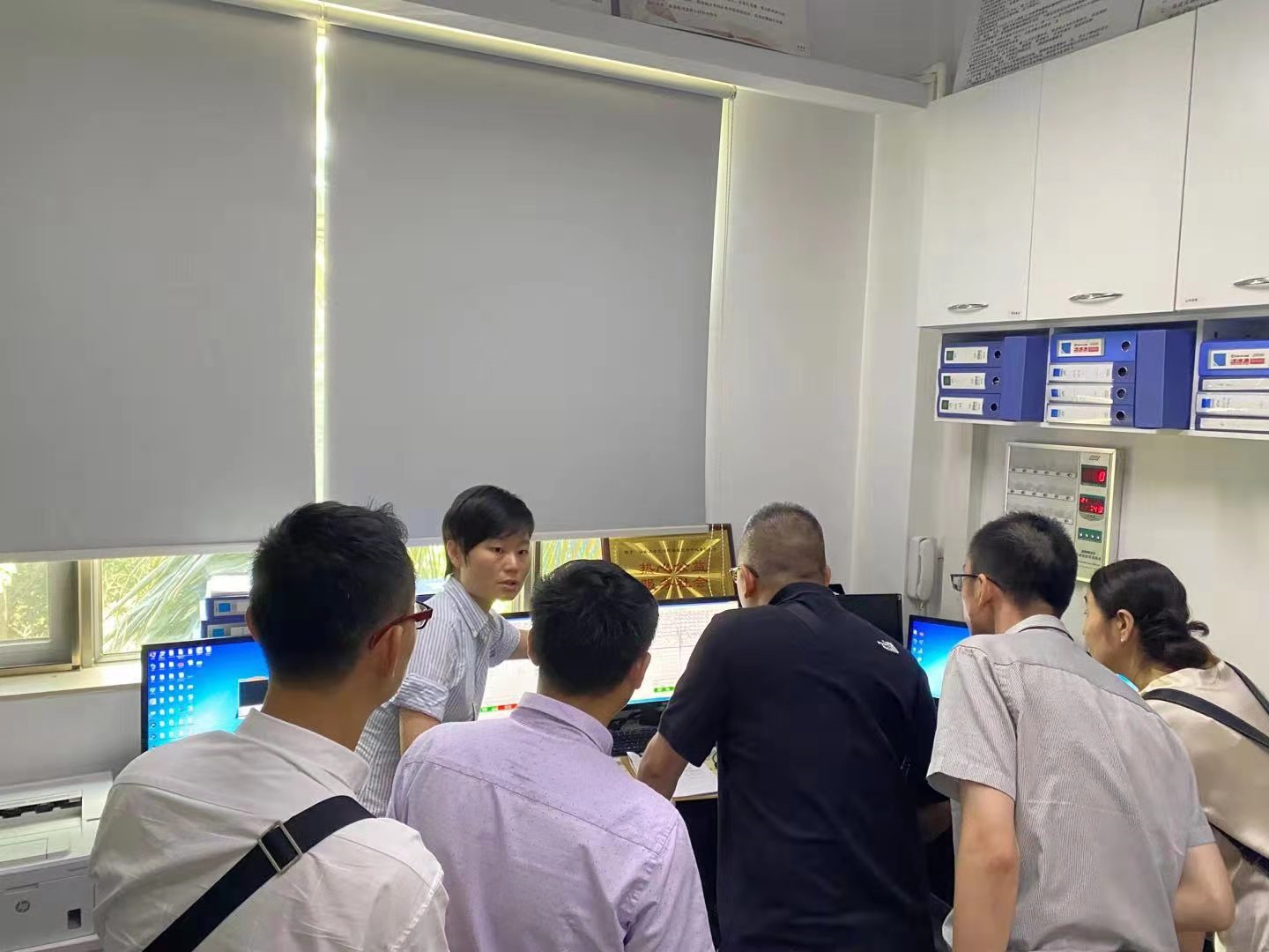 座谈会后,在李韵主任带领下参观了睡眠医学中心中控室、门诊、病房等。给大家展示、讲解了多导睡眠监测仪(PSG)。多导睡眠监测是在整夜睡眠过程中,通过睡眠监测仪连续并同步地记录脑电、眼电、呼吸、心电、血氧、肢体运动、体位、鼾声等近20项指标,全部记录检测人体夜间睡眠情况并让医师全面了解和正确诊断患者睡眠疾病的一种检查方法。