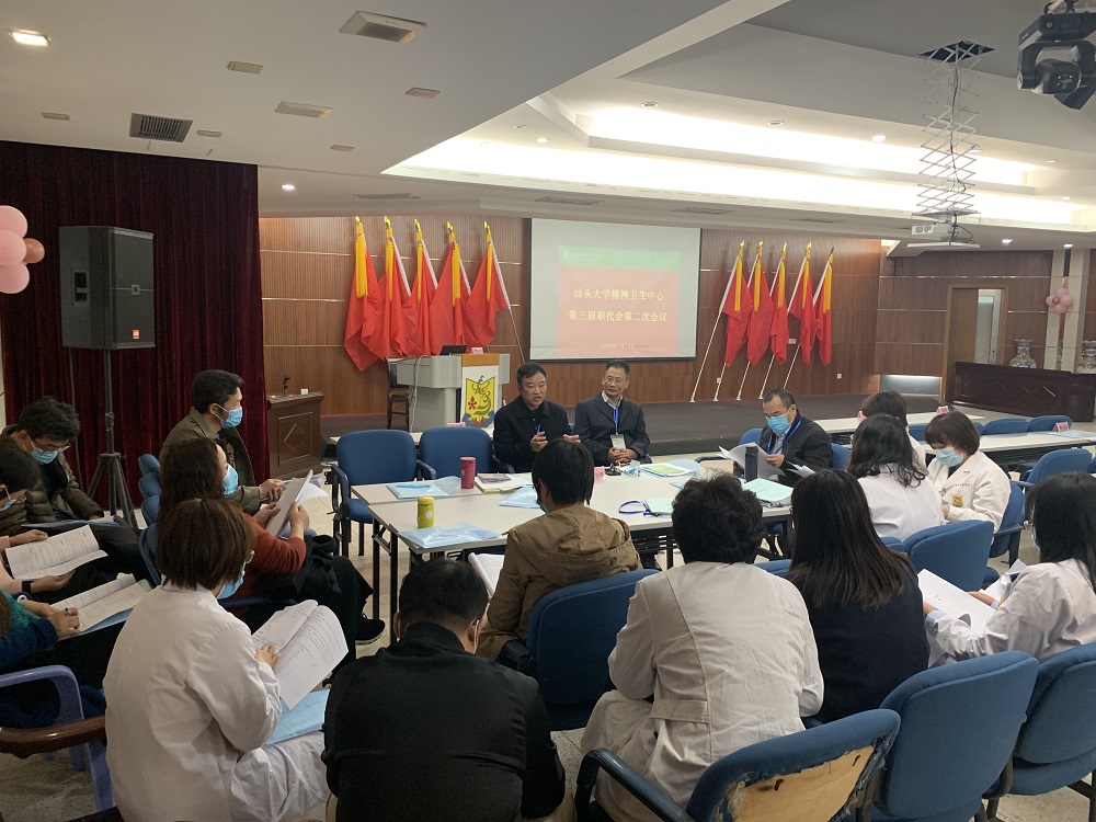 大会在庄严的国歌声中拉开了序幕。与会代表听取并审议了黄庆军院长所作的《踔厉奋发、笃行不怠,奋蹄“十四五”新征程》的工作报告、《汕头大学精神卫生中心“十四五”规划》和卓永宁科长所作的《汕头大学精神卫生中心绩效管理方案(修订版)》报告,书面审议了《工会工作报告》《财务工作报告》。
